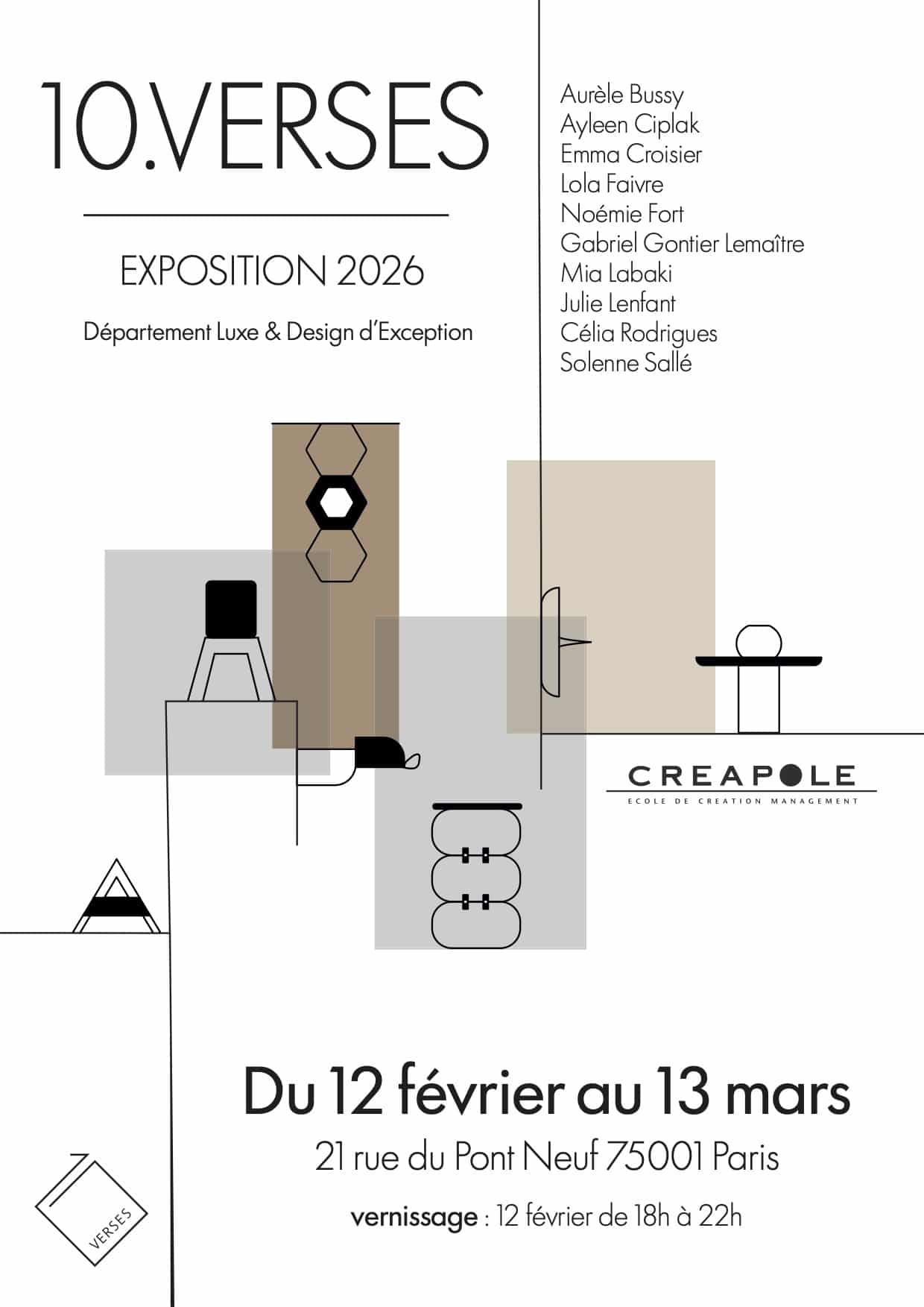 CREAPOLE a le plaisir de présenter 10.VERSES, une exposition conçue par dix étudiants de la spécialisation Luxe & Design d’Exception, qui interrogent notre manière d’habiter le monde aujourd’hui.